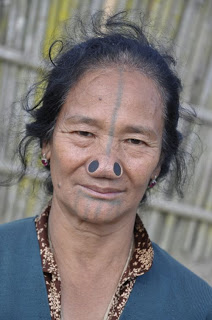Untuk membuat diri mereka tidak menarik bagi suku-suku lainnya, maka wanita Apatani mulai mengenakan hidung yang disumbat yang mengerikan ini, dan mentato wajah mereka dengan garis horizontal, dari dahi hingga ke ujung hidung, serta lima garis di dagu mereka.